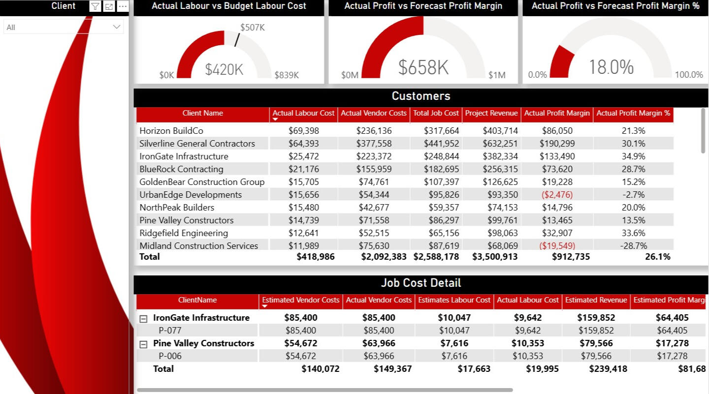 Job Costing, Top Performers, Cash Position